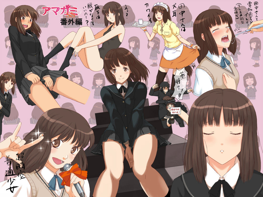 【意図的なのか偶然なのか分かりませんが、amagamiアマガミを分割して、ama=アマ(女)を主語に、gami=噛むを動詞に配置しているので文法的に成立している高度な言葉遊びになっています。「どのヒロイン(女)をアマガミしたい?」みたいに訳せるでしょうか。分かりやすく「誰が好き?」にしてしまいましたが。】